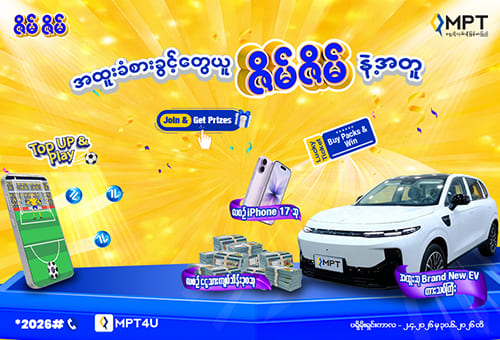 အသစ်စက်စက် EV ကားအထူးဆုကြီး (၁) ဆု၊ လစဉ် အထူး ငွေသားဆုကြီး ကျပ်သိန်း (၃၀) ဆု (၅)ဆု ၊ လစဉ်အထူး iPhone 17 ဆုကြီး (၁)ဆု နှင့် ဒေတာဆုလက်ဆောင်များစွာကို “ဇိမ်ဇိမ်”ပရိုမိုးရှင်းနဲ့ အခုပဲရယူလိုက်ပါ…